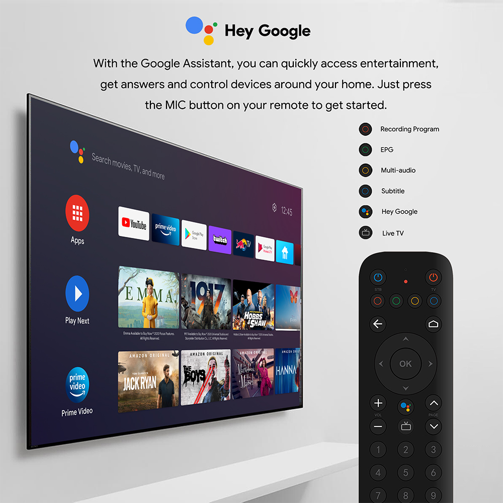 MECOOL KM1 Android TV box supports Google Assistant, You could dim the lights and control other smart home devices. Or even manage tasks by using your voice.