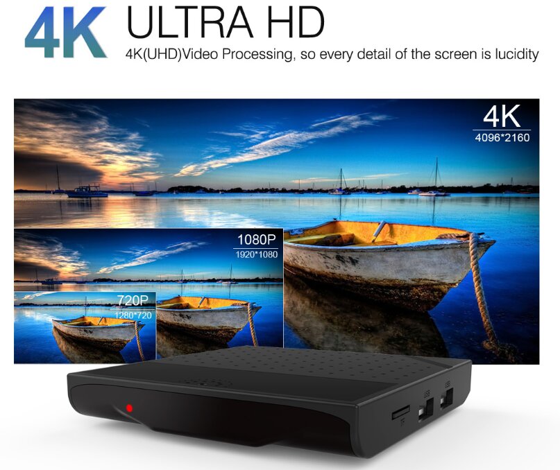 This streaming media player comes with Android 7.1 OS, and it is powered by Amlogic S912, includes a octa-core CPU that can reach speed up to 2.0GHz. Enjoy movies, TV shows, and photos in stunning 4K ultra high definition.