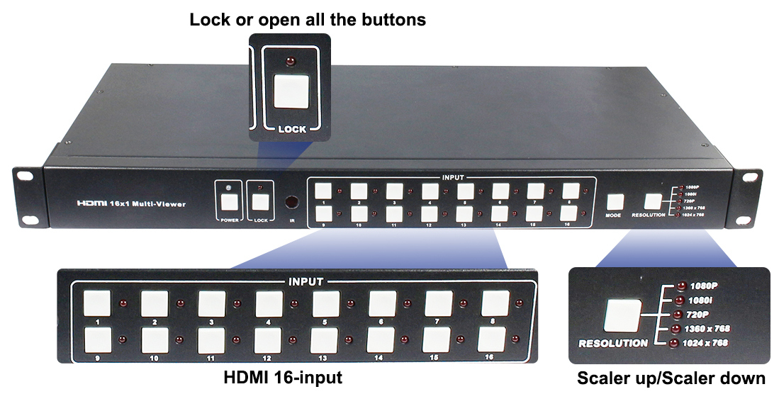 Matryca HDMI 8x8 HDMI z RS232 | Splitter 1x4 HDMI Video Wall CVBS VGA HDMI USB | Przełącznik HDMI 16x1MultiViewer HDS-8161SL |