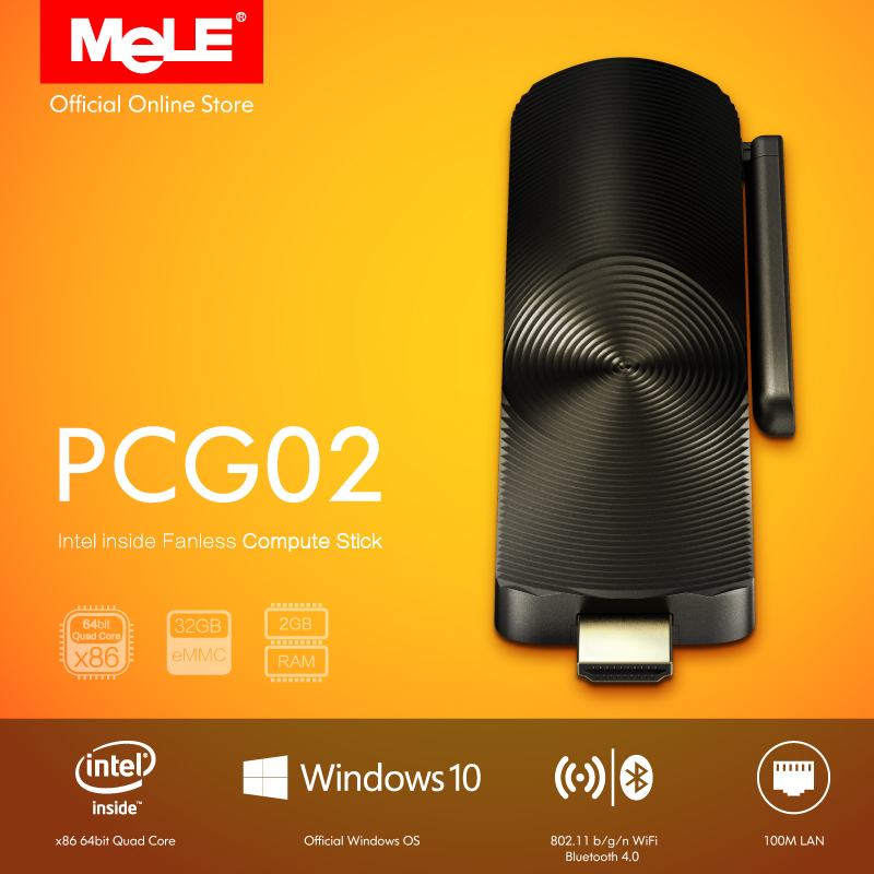 MeLE PCG02 to pełnoprawny komputer zamknięty w obudowie niewiele większej od pen drive'a. Ten minikomputer jest wyposażony w system pasywnego chłodzenia, dzięki któremu pracuje całkowicie bezgłośnie. Teraz ma wbudowaną kartę sieciową z złączem RJ-45. Posiada antenę WiFi, by sygnał był lepszy i bardziej płynny. Sercem komputera jest czterordzeniowy procesor Atom Z3735F firmy Intel, który działa z częstotliwością taktowania1,33 (1,83 w trybie Turbo) GHz i współpracuje z procesorem graficznym Intel HD Graphics (G7-LP). System operacyjny to najnowszy Windows 10. Ten Mini PC posiada 2 GB DDR3 pamięci RAM oraz 32 GB eMMC ROM. Dodatkowo w obudowie znajduje się wejście na kartę micro SD, gniazdo zasilania, wejście HDMI, LAN, USB 2.0, przycisk zasilania. O pracy urządzenia informuje nas świecąca dioda. MeLE PCG02 jest idealny do pracy w biurze, a także do relaksu w domu.