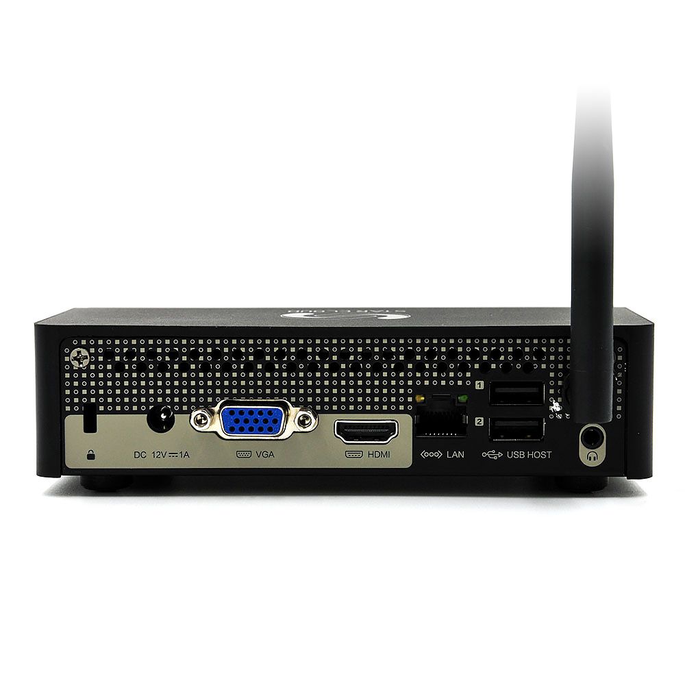 MeLE PCG03 Plus to urządzenie, które również nie zajmuje zbyt dużo miejsca.To pierwsza miniatura PC (HTPC), który oparty jest na najnowszym systemie Intel Atom x5-Z8300 Cherry Trail pracującym z taktowaniem 1,44 GHz (1,84 GHz w trybie Boost). Posiada kartę graficzną Intel HD Gen8. Również tak, jak MeLE PCG02 posiada system chłodzenia pasywnego i w w związku z tym nie wydaje żadnych zbędnych dźwięków. MeLE PCG03 Plus pracuje na systemie operacyjnym Windows 10. Ten Mini PC posiada 2 GB DDR3L pamięci RAM oraz 32 GB eMMC ROM, dodatkowo wejście na kartę SD/SDHC. W obudowie zainstalowane są również wejścia LAN, VGA, HDMI 1.4, wejście na słuchawki, port USB 3.0, dwa wejścia USB 2.0. Jest wyposażony w antenę WiFi. Ten mini komputer jest powszechnie stosowany jako kino domowe, odtwarzacz multimedialny do TV i gier. Może być używany jako komputer w biurze. Jest nieodzowny w przemyśle i usługach, zwłaszcza w sklepach, restauracjach, miejscach, w których pracują kelnerzy i kasjerzy (POS – system).