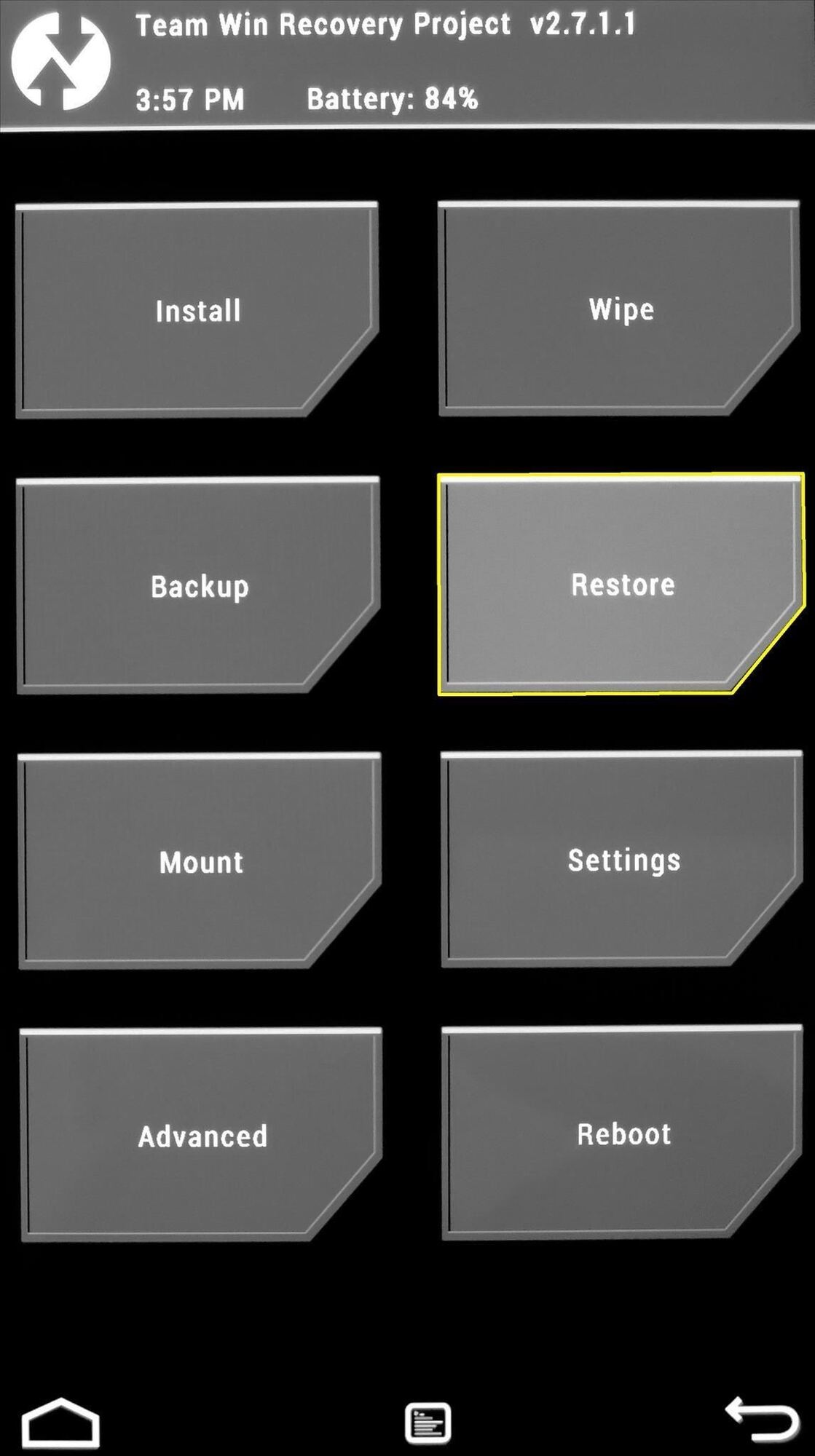 Po zakończeniu procesu przywracania można przycisnąć Reboot z głównego ekranu TWRP.