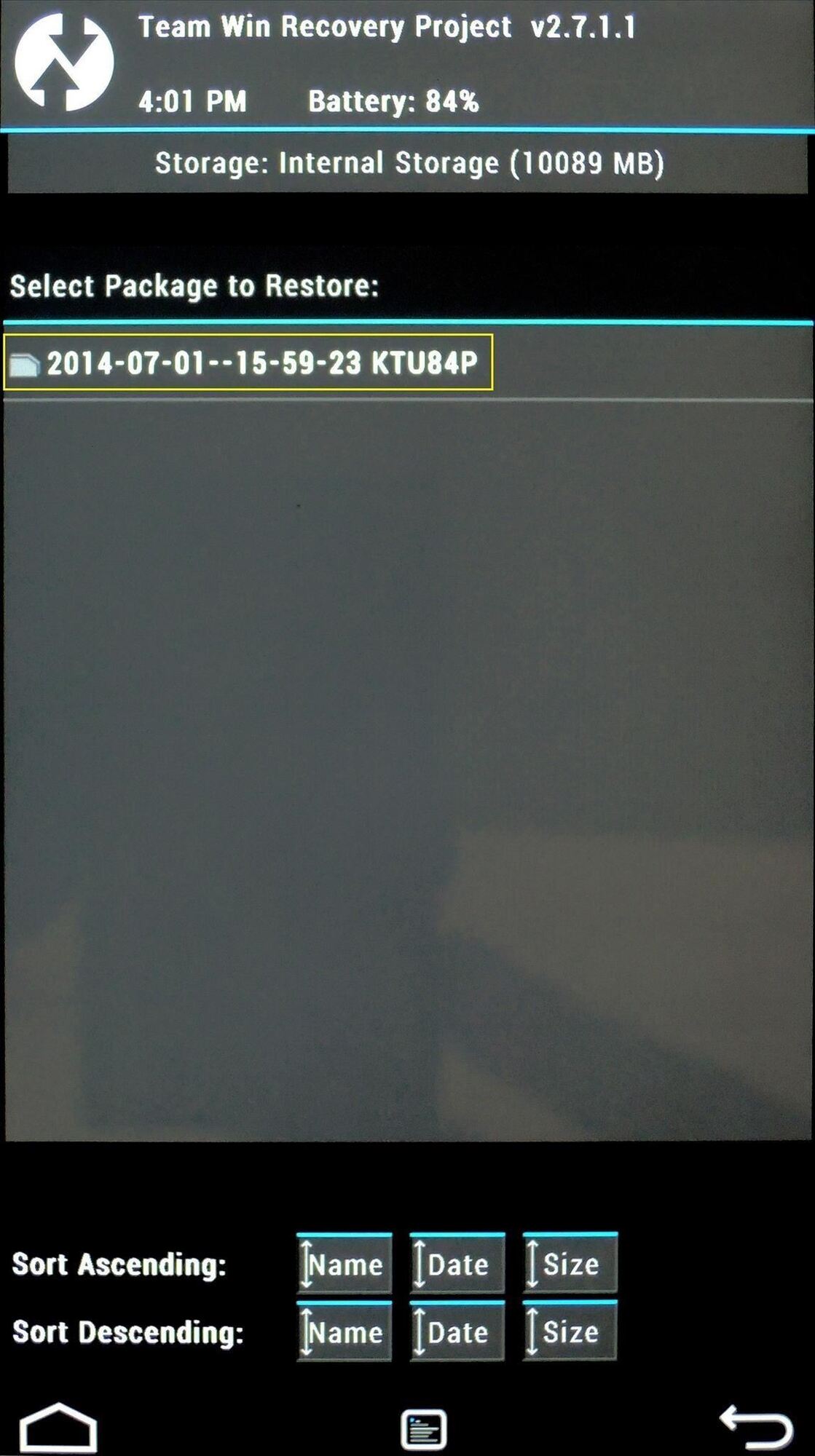 7. Z głównego ekranu TWRP przyciśnij przycisk Recovery. Następnie wyświetli się kopia, utworzona za pomocą TWRP. Wystarczy wybrać ten plik oraz otrzymasz dostępne obrazy partycji, które można przywrócić. Najlepiej jest pozostawić wszystko zaznaczone, a następnie po prostu przesunąć suwak na dole, aby przywrócić.