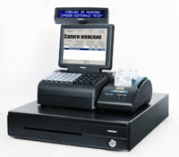 Для мини-маркета особое значение имеет программно-аппаратная часть фронт-офиса. Самая простая фронт-офисная система состоит из контрольно-кассовой машины (ККМ). Это может быть как пассивная касса, так и POS-терминал или POS-система, состоящая из фискального регистратора, персонального компьютера с клавиатурой, денежным ящиком, дисплеями кассира и покупателя. Для мини-маркета к этому набору можно добавить считыватели магнитных карт и весы с печатью этикеток. Формат «магазина у дома» предполагает небольшой размер рабочего пространства кассира, поэтому POS-система должна быть компактная, иметь малый футпринт (площадь, на которой размещено оборудование). Желательно, если она будет выполнена в форме моноблока.