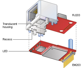 EM модули могут использоваться с любыми стандартными разъемами Ethernet (например, разъем YCL-PTC1111-01G RJ45 с интегрированной трансформаторной развязкой).