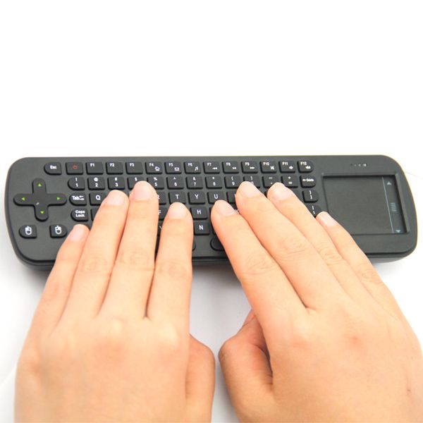 2.Universalremote control with touchpadHeIt works on the same principle as a laptop's touchpad. We move our finger across the touchpad, and the cursor moves accordingly. The cursor movement speed is adjustable. Such devices come in one type — keyboard + touchpad. This model is very popular among users.MEASY RC12.